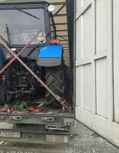 Тракторы были загружены в тентованные полуприцепы и отправлены в порт. Но возникла проблема, один из наших автопоездов сломался на пути следования. Мы оперативно организовали перегруз тракторов в подменный авто, чтобы успеть на судно.